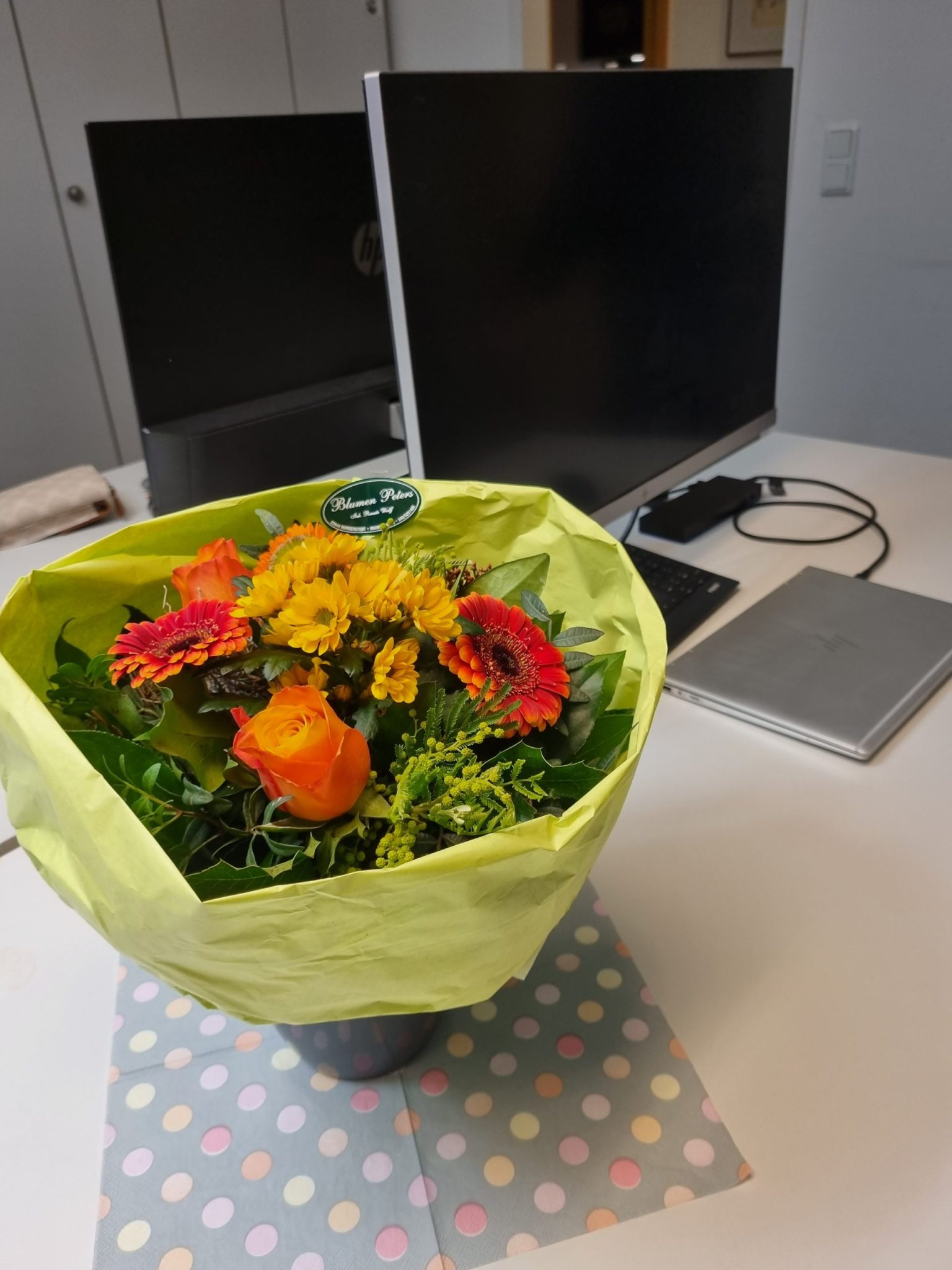 Den Abschied haben wir selbstverständlich in kleiner Runde im Büro und anschließend im Privaten bei einem gemeinsamen Umtrunk mit bunter Platte gefeiert.